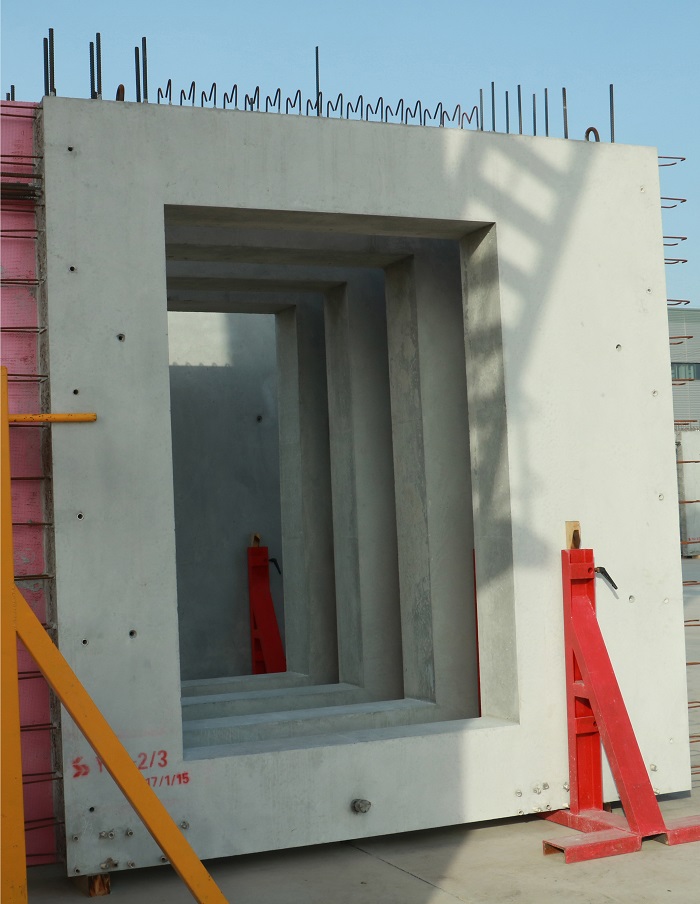 公司設有PC車間、模具車間、中心實驗室、全封閉式混凝土綠色環(huán)保攪拌站。其中,PC車間擁有4條高效節(jié)能生產(chǎn)線,包括墻板自動化生產(chǎn)線、板類構(gòu)件自動化生產(chǎn)線、固定臺模、全自動化鋼筋加工生產(chǎn)線。